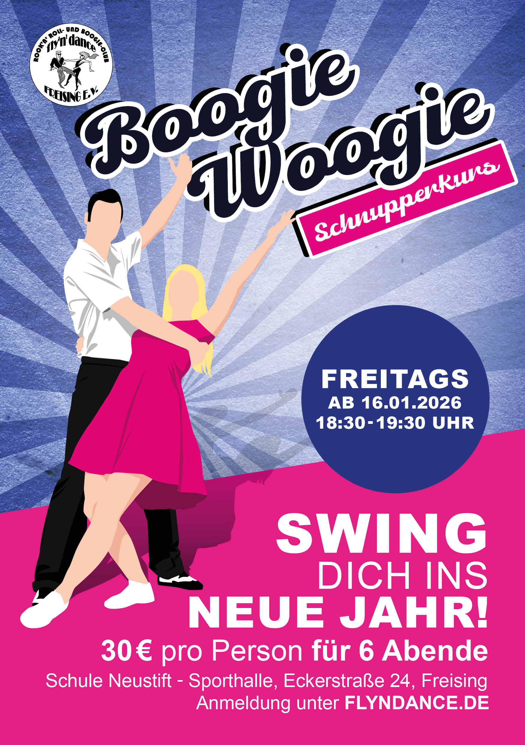 Du willst den Boogie-Woogie (kennen)lernen und hast bisher keine Erfahrungen mit diesem Tanz? Dann komm zu unserem unverbindlichen Schnupperkurs und probier dich aus! Hier geht's zur Anmeldung