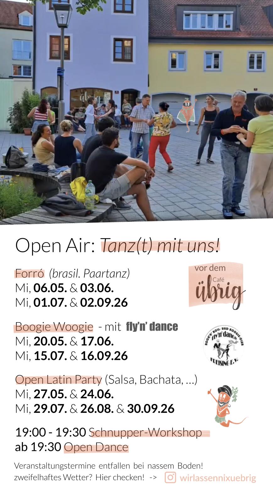 in der Freisinger Innenstadt frei nach Lust und Laune! Vor dem Café Übrig in der General-von-Nagel-Straße lädt Boogie-Musik zum Schnuppern und anschließend zum freien Tanzen ein.